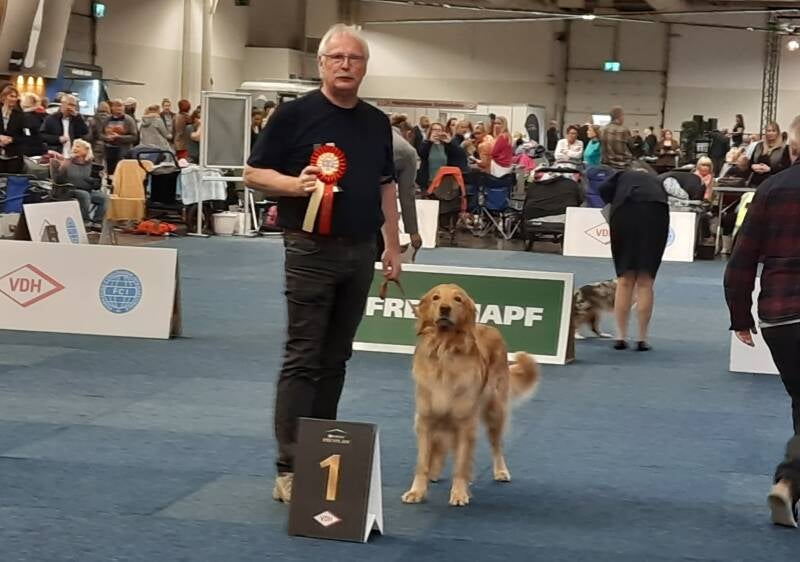 Brioche startet an seinem 2. Geburtstag in Delmenhorst in der Offenen Klasse und erhällt ein Vorzüglich. Er ist damit wahrscheinlich der jüngste Rüde in der Offenen Klasse